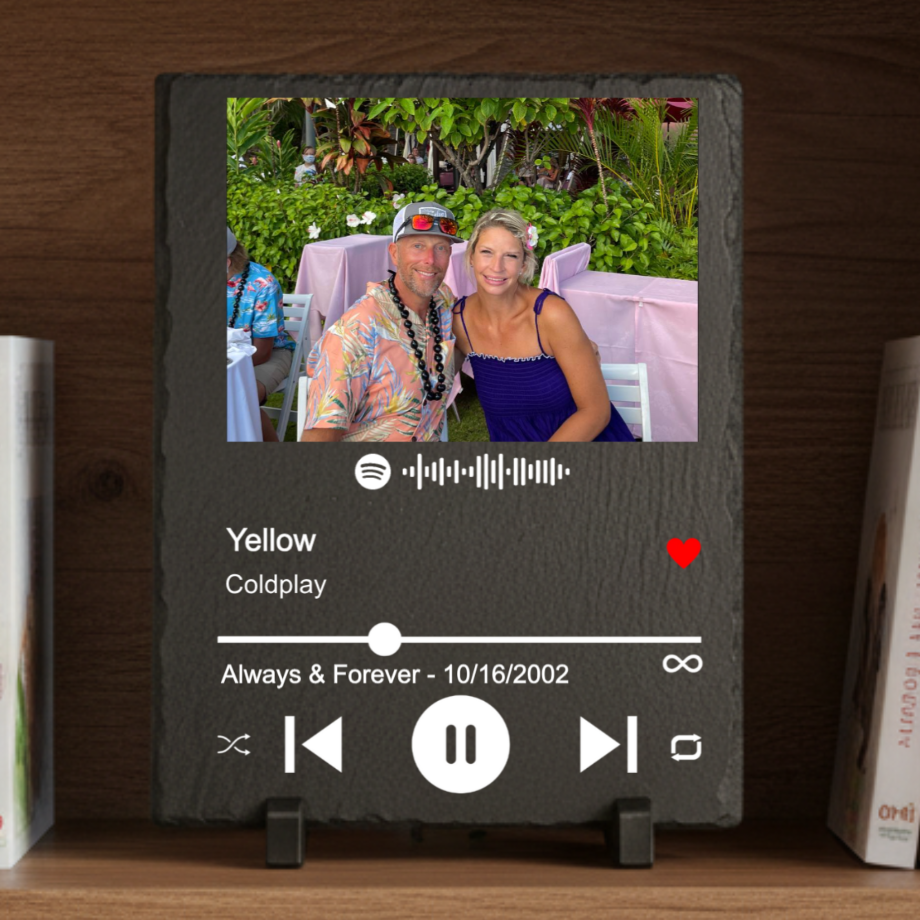 Some songs aren’t just background music—they’re the soundtrack to your story. Whether it’s your first dance, a road trip anthem, or that song you both belt out in the car, this custom slate plaque turns a special tune into a beautiful, lasting keepsake. Watch their face light up when they see your photo, your song, and your memory, all printed on real stone.