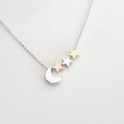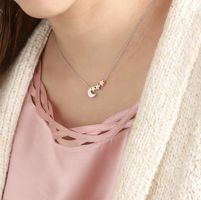 With this necklace, you may choose the number of stars that are available in Silver, Gold, and Rose Gold as a moon pendant. The necklace comes in a cute gift box so that your girl can open it to reveal the necklace that is uniquely made for her.