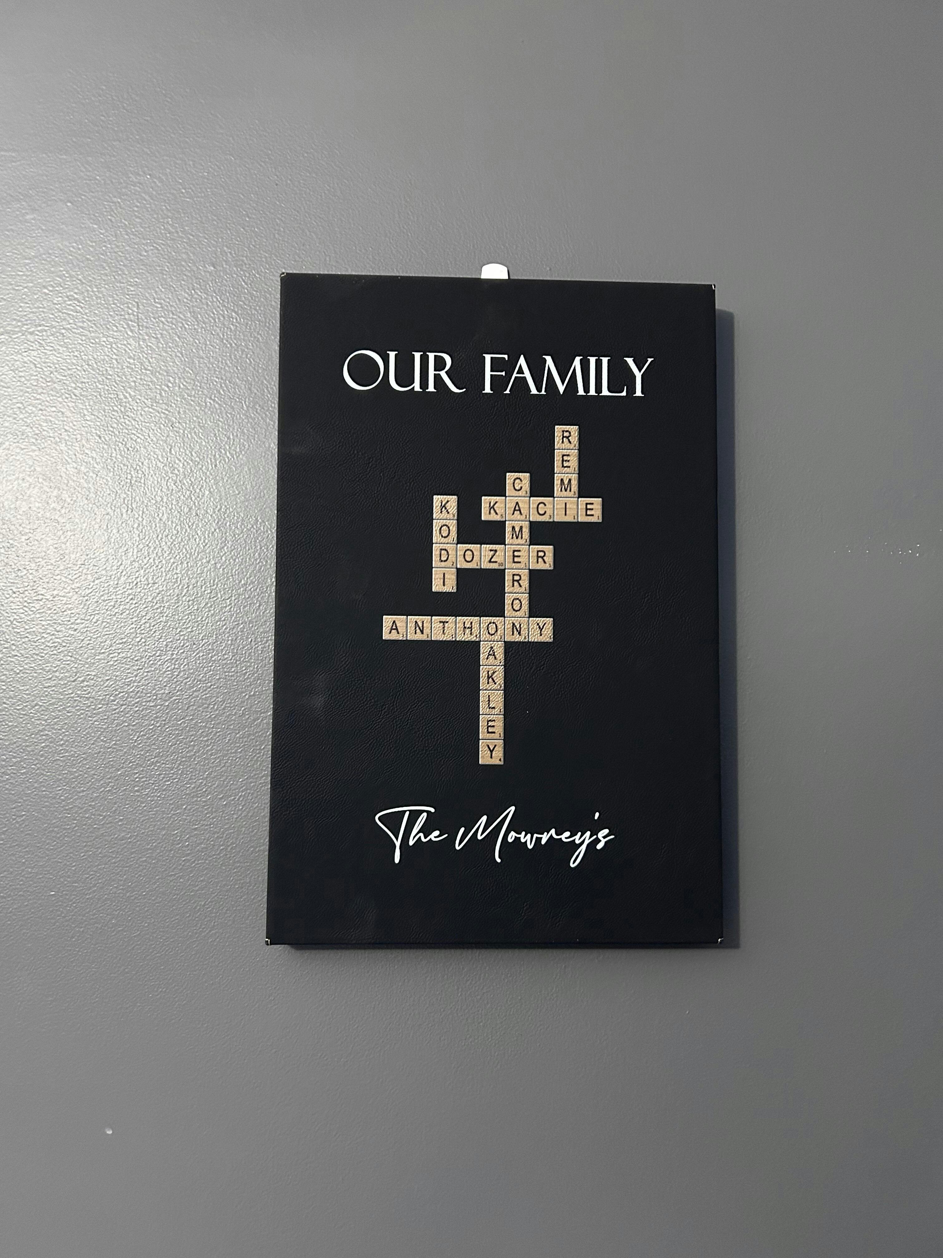 Every name is placed in a crossword-style layout that tells your unique family story — from children and partners to pets and parents — topped with your custom title and a quote or date of your choosing. It's more than décor — it's a keepsake, a conversation piece, and a lasting reminder of how much she’s loved and appreciated, every single day.