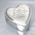 This keepsake box is heart-shaped with a bright silver-plated removable top and bottom. A soft blue felt wraps around the inside of this elegant box to keep her rings, necklaces, and bracelets safe. To make this box as special as can be, put your personalized message into the text box above. Follow the example from the pictures above to get an idea.