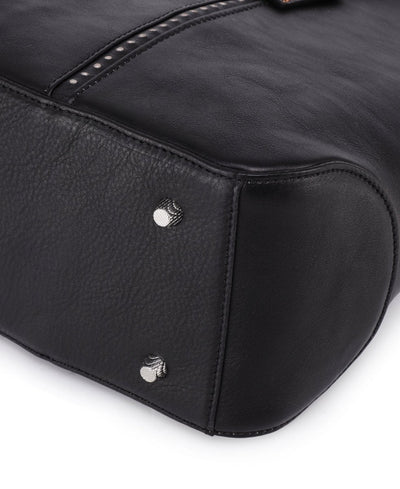 Meet our Dancing Bamboo Tote: an everyday, everywhere bag handcrafted from Genuine Leather with decorative beads. Recycled hardware nods to a refined sensibility, while a spacious interior can accommodate all of your daily essentials and more.