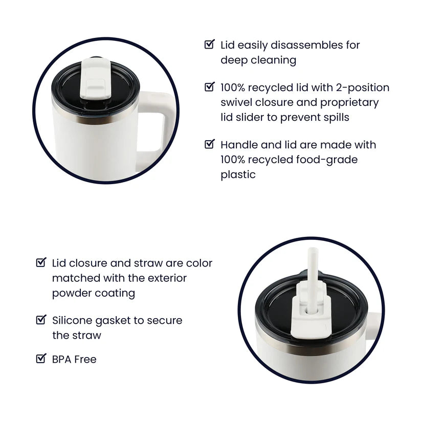 Includes: Reusable straw and lid with 2-position swivel closure