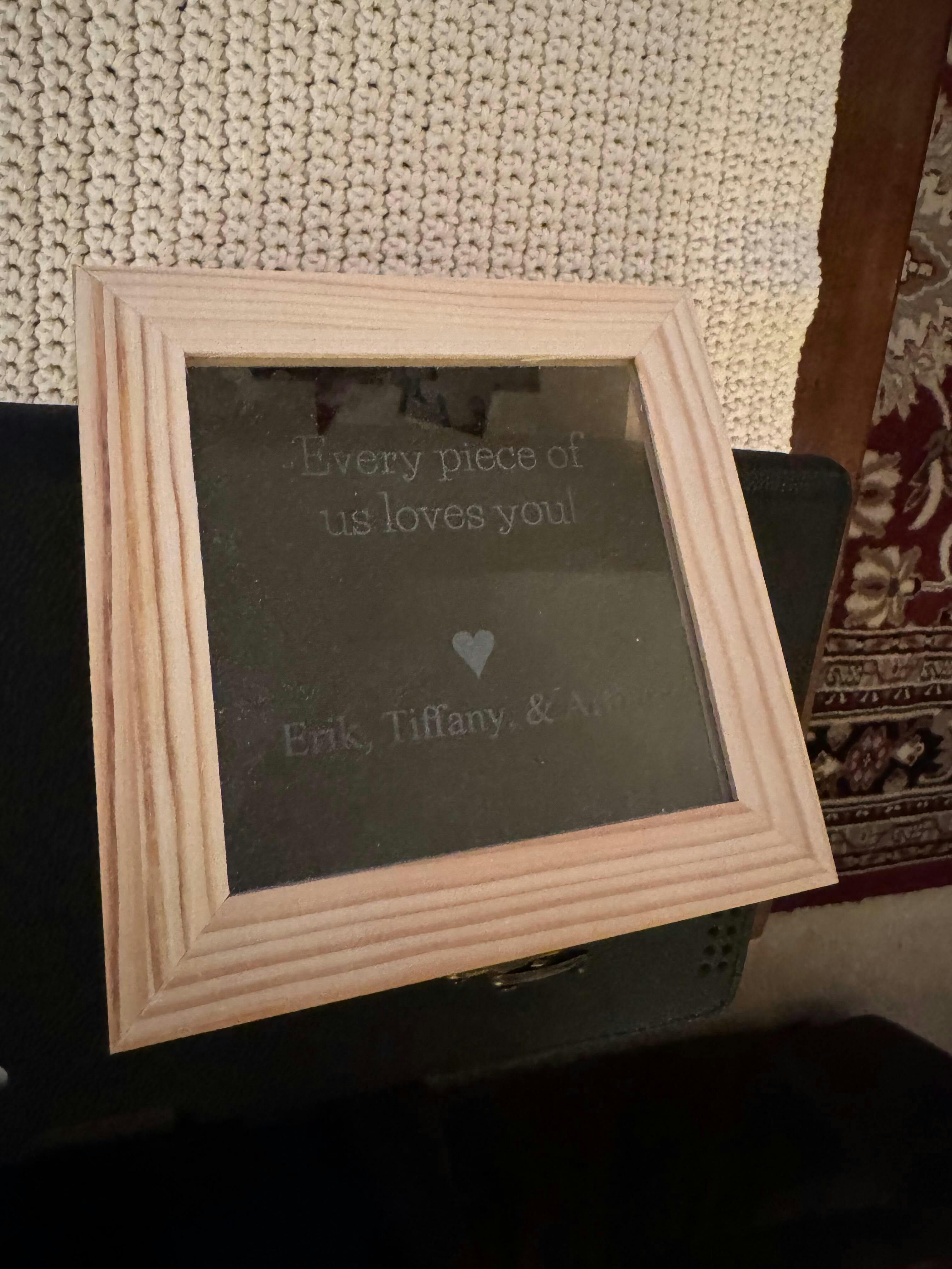 Beautiful gift for our anniversary but it looks like the engraving didnt come out perfectly and the one initial is messed up/doesnt look right. May have returned it if it didnt take so long to come
