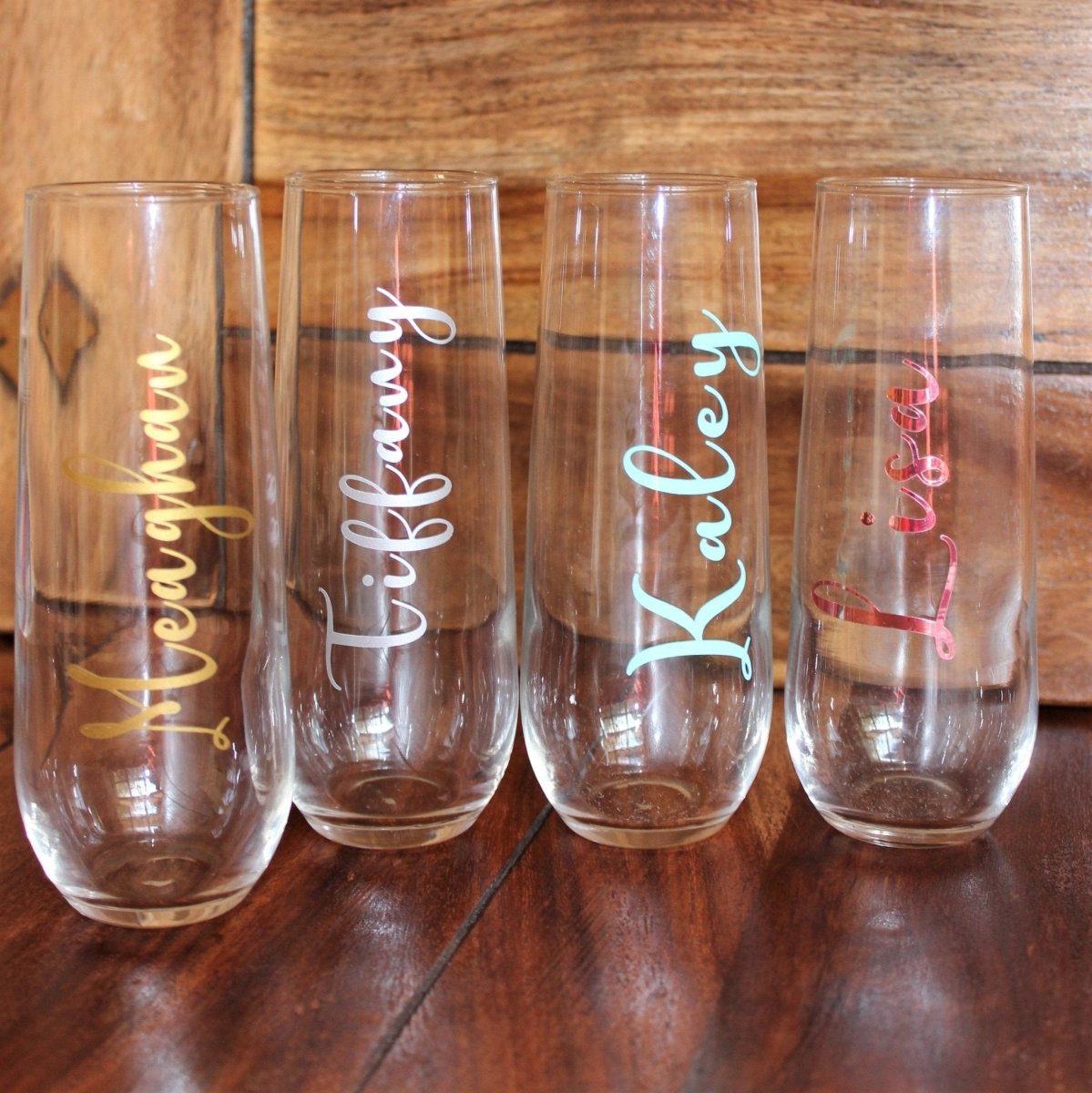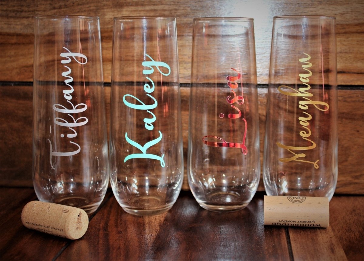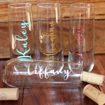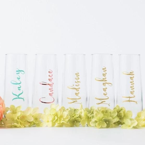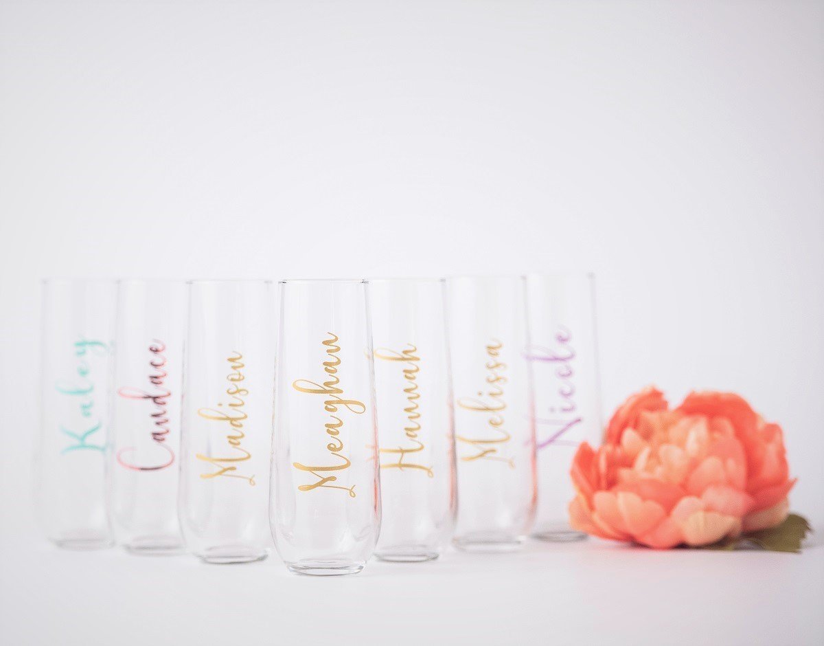 You’re all busy, preparing for the big day ahead. You’re getting your makeup done. Your maid of honor is getting her hair done. Your other bridesmaids are patiently awaiting their turns, relaxing in their robes. You are all sipping on mimosas. Now, imagine you are all sipping on mimosas out of stemless champagne flutes. Even better, they are christened with your names emblazoned on the front, in sophisticated colors. You’ve been wanting to find the perfect way to show your appreciation to your bridesmaids for their roles on your special day. With the Bring Out the Bubbly Stemless Flutes, thank you never tasted so crisp.