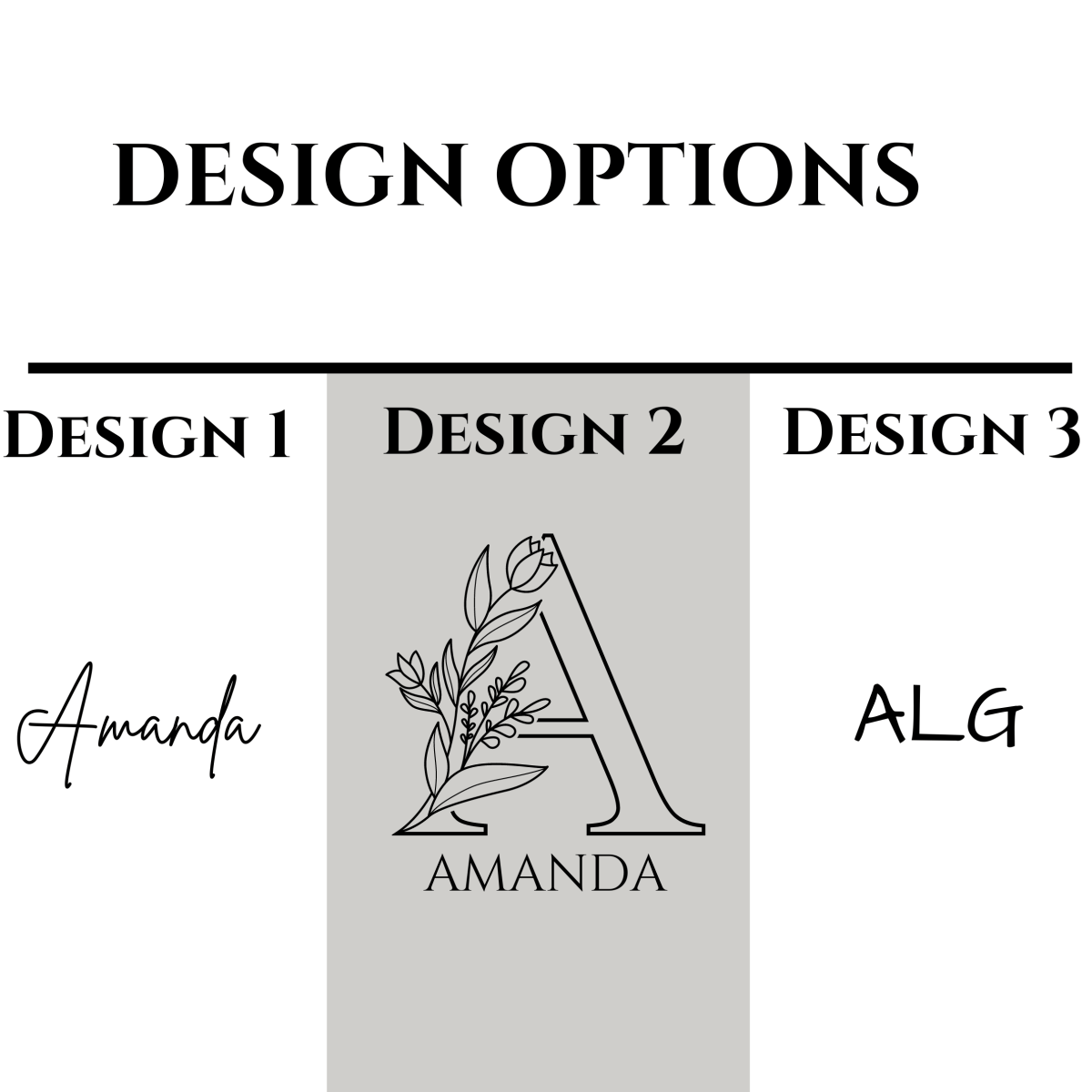 Choose your personalization style from either a large floral initial, her full name in script, or simply her initials in a standard font
