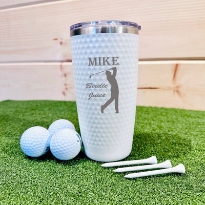 The perfect gift for any golfer, the custom golf ball tumbler! This unique golf tumbler is triple vacuum insulated to keep your drinks cold or hot, and made of tough-grade stainless steel so it's ready to go anywhere. It's a must-have for any beer lover or coffee drinker who also loves hitting the links. Order yours today and be the envy of all your friends.