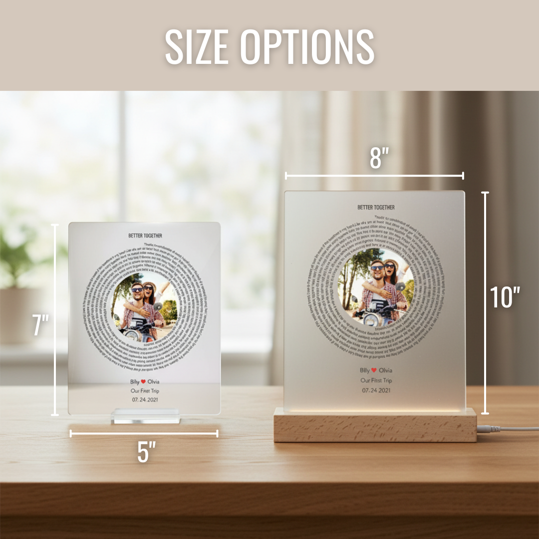 Turn your favorite memory into a work of art with this personalized acrylic music plaque. Upload a special photo and choose the song that speaks to your relationship, and we’ll create a modern keepsake that beautifully blends music and memory.