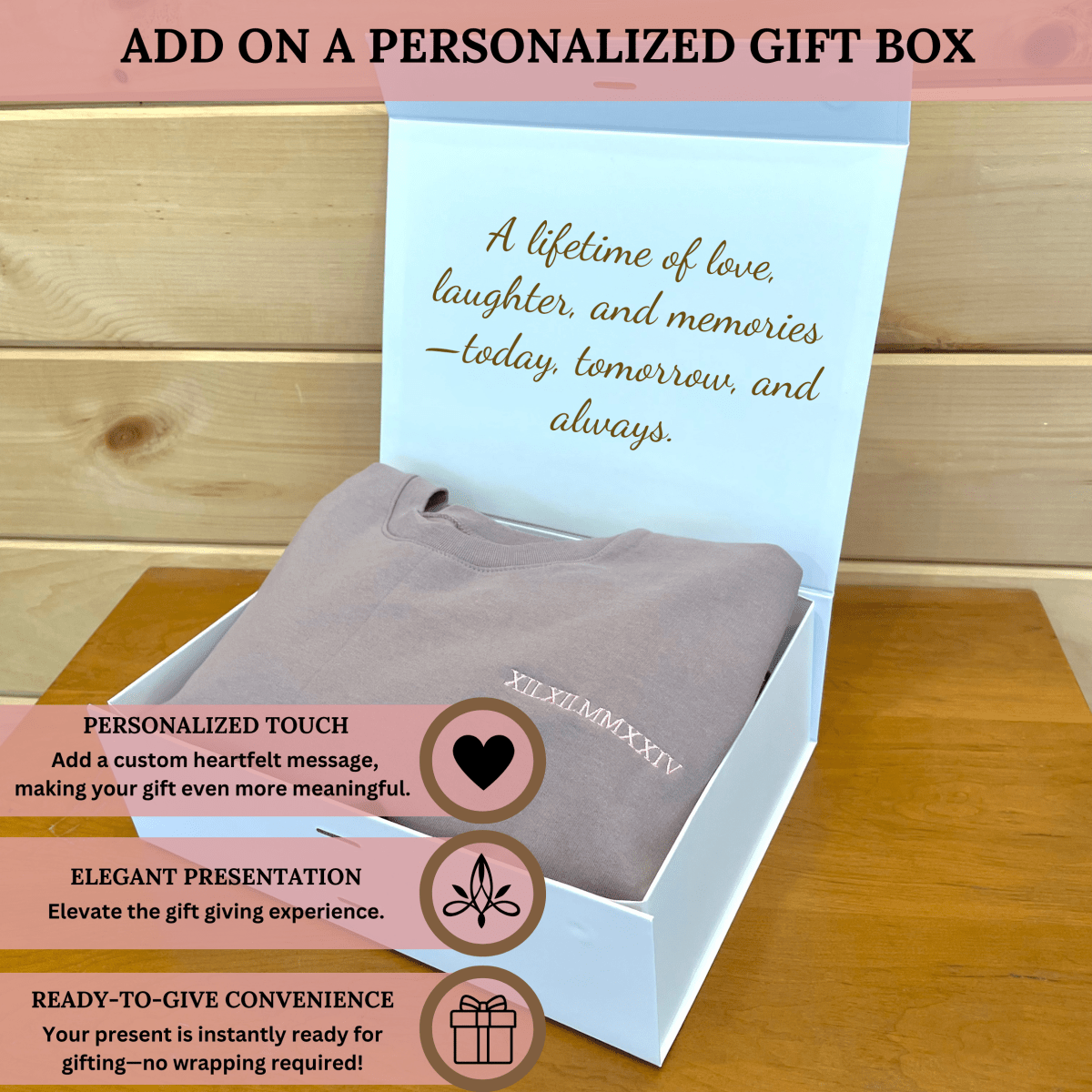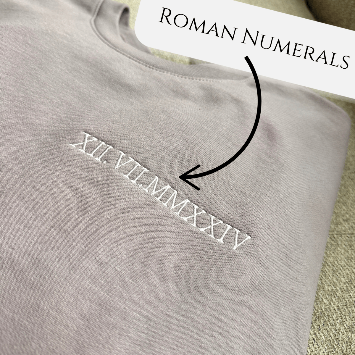 Celebrate a moment that means everything with our Embroidered Sentimental Sweatshirt. Designed for cozy days and meaningful memories, this soft and durable sweatshirt combines everyday comfort with a personal touch. The minimalist Roman numeral embroidery adds a timeless and elegant detail, the perfect way to commemorate a special date such as an anniversary, birthday, or milestone.