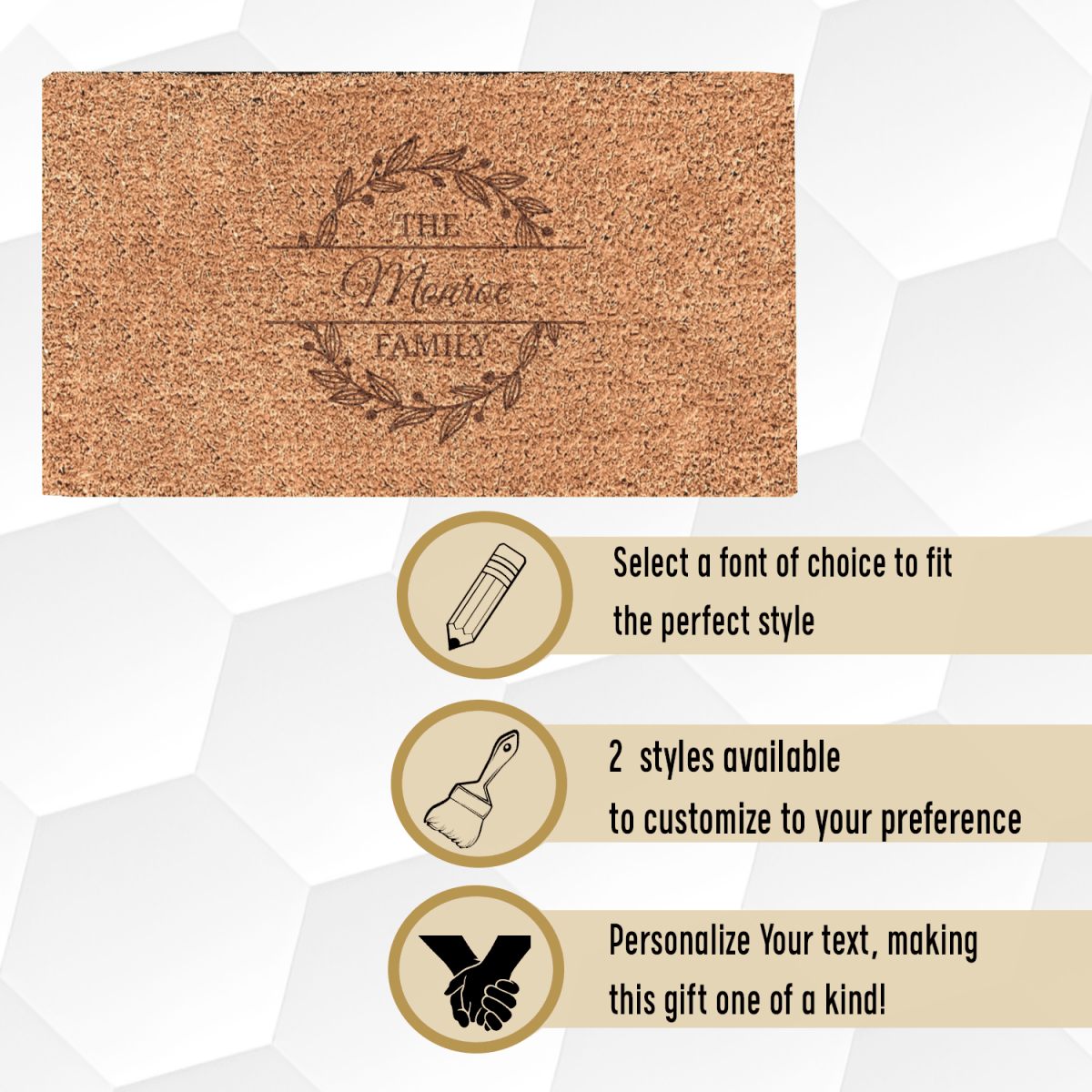 Are you looking for the perfect family gift that will warmly welcome your loved ones into your home? Look no further than this personalized doormat! With its charming design and customizable text options, it's sure to make a thoughtful addition to any household.