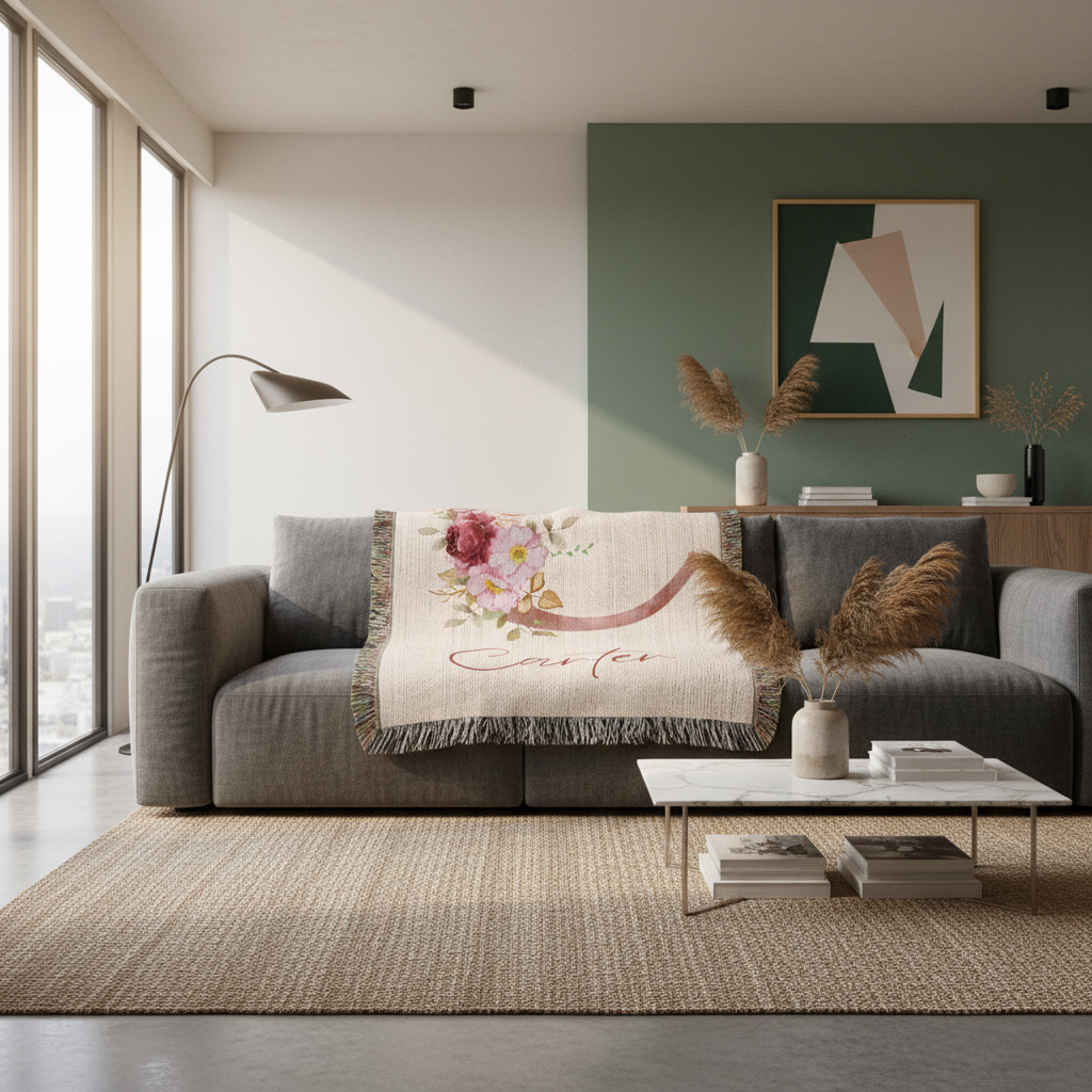Wrap your loved ones in comfort, warmth, and meaning with this beautifully personalized Floral Monogram Woven Blanket — a timeless tribute to the love you share and the moments that matter most. Thoughtfully designed with an elegant floral initial and your family name beneath, this blanket becomes more than décor — it becomes a daily reminder of the bonds that hold you together. Whether draped over the couch or wrapped around a loved one, it honors the story of your home in the most heartfelt way.