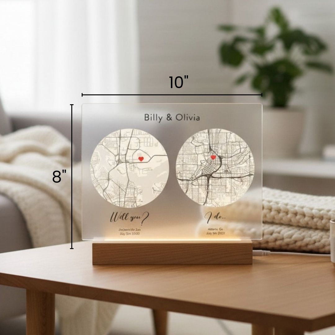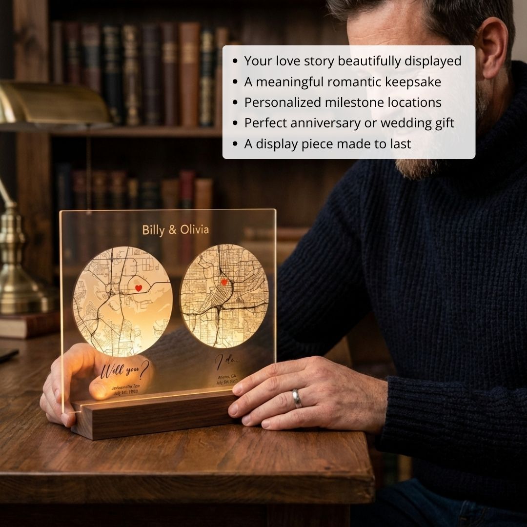 It's much more than just a gift - it's an enduring symbol of love that will bring joy to any space at home. Whether presented as a unique engagement or wedding gift or simply to revive your favorite memory together, this First Date to I Do Romantic Map is sure to be cherished for many years. Give a meaningful gift that will stand out from all other presents in durability and craftsmanship - get your hands on one today!