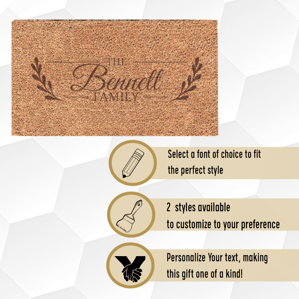 This natural coir doormat features intricate detailing that showcases your chosen text and font beautifully. The durable material made from natural fibers ensures long-lasting quality, while the non-slip rubber backing provides stability even in wet conditions. Weather resistant and full of sentimental value, this family themed doormat is both functional and heartwarming.