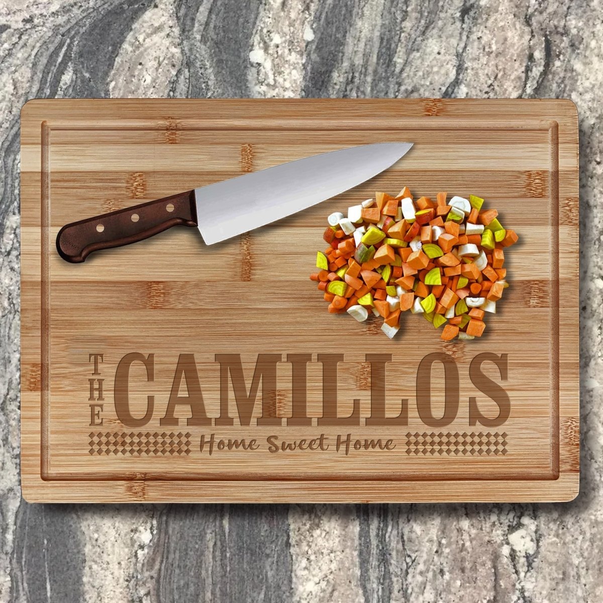This custom engraved cutting board can be easily personalized by adding his last name into the box at the top of the page. Please follow the example below.