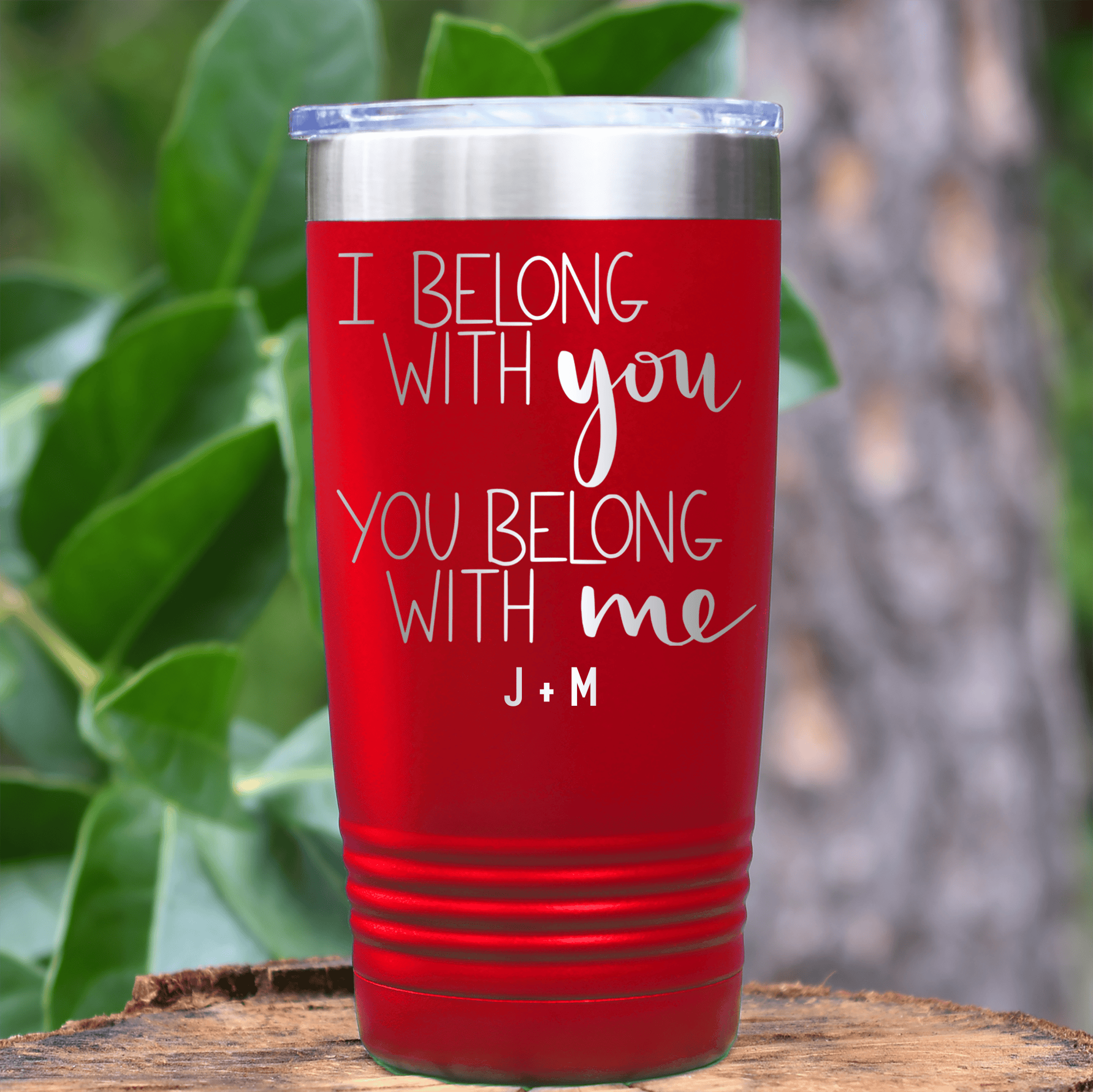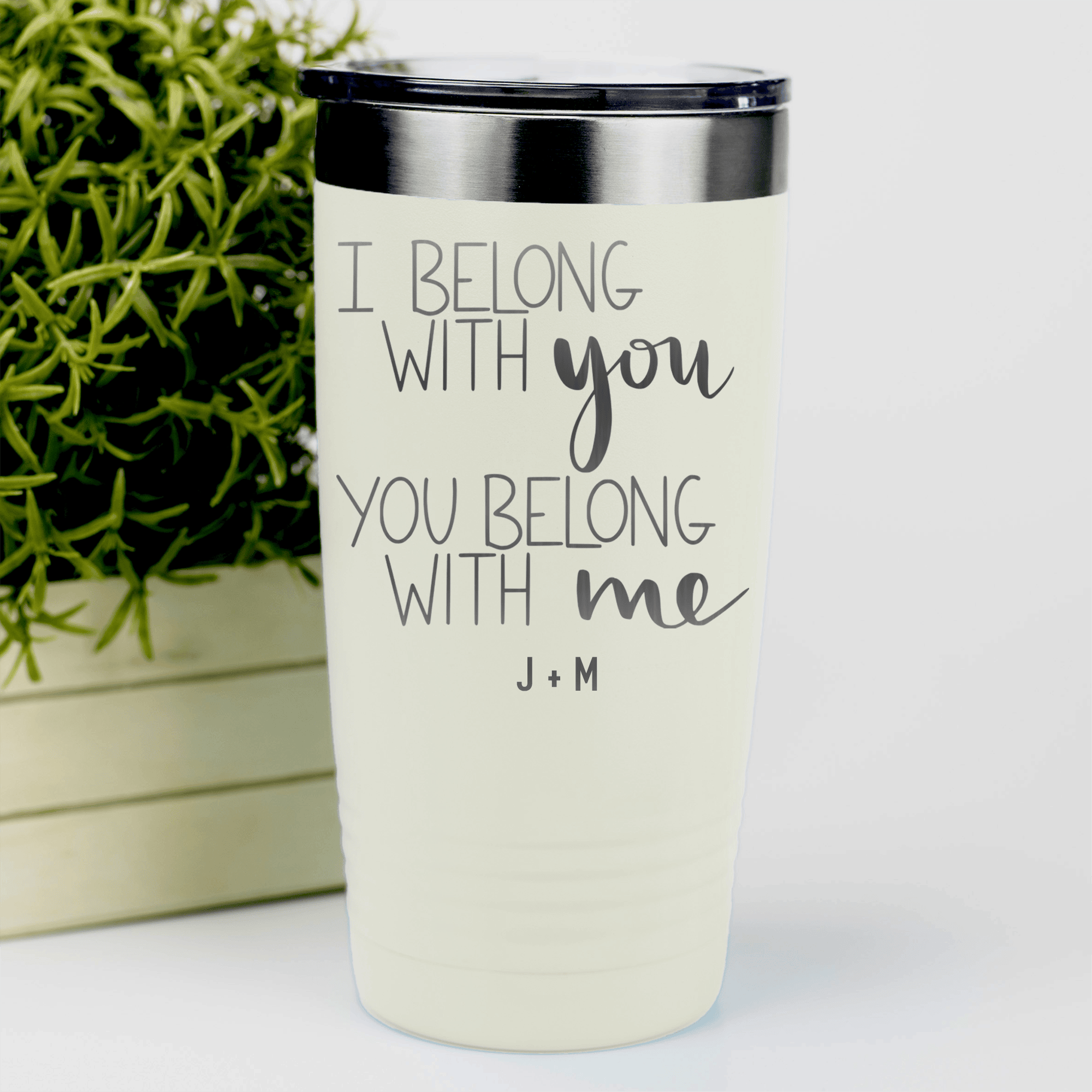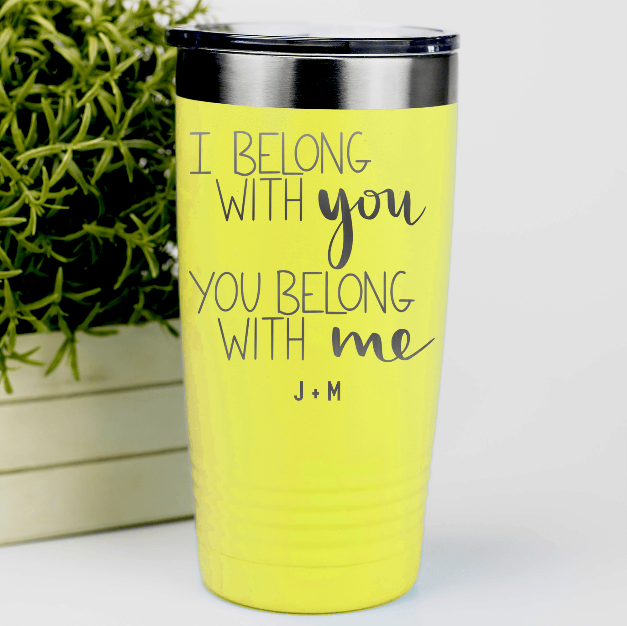 This 20 oz tumbler comes in an array of vibrant colors to suit any personality, making it truly customizable just like your relationship. Its double wall insulation ensures that drinks stay at the perfect temperature for hours on end - whether it be piping hot morning joe or refreshing ice-cold beverages during summer picnics together. And don't worry about fading designs as our laser etched artwork will remain intact even after countless trips through the dishwasher.