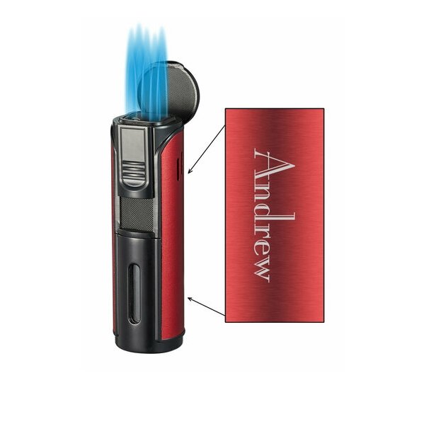 The Pentajet Cigar Lighter features FIVE powerful butane jet flames, perfect for lighting even the largest of cigars quickly and easily. Just flip open the cap and pull down on the activator to trigger the ignition apparatus. Keep track of your butane levels with the oversized fuel window located just below the activator and adjust the power of the torches with the adjustment dial at the base of this lighter.