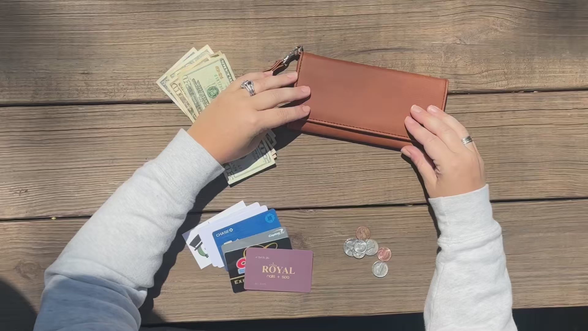 🤑 There is a zipper compartment for change, a larger compartment for bills, and 2 smaller compartments for receipts, etc.