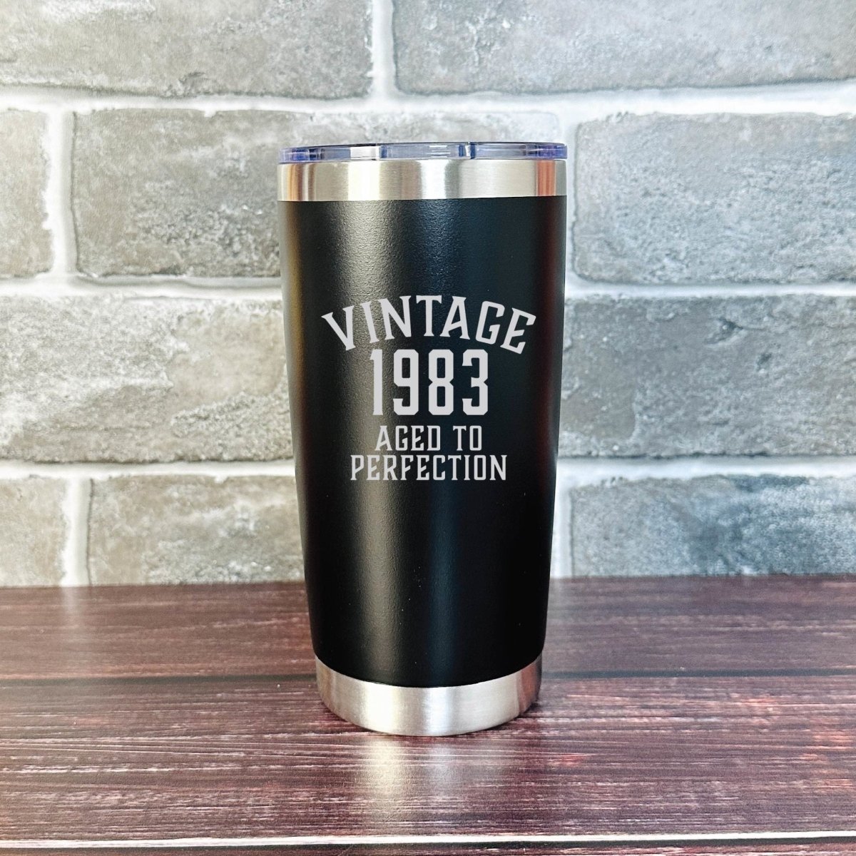 For the aged-like fine wine man, you need a well-suited tumbler. A tumbler he can use with pride and think of the number of rotations this earth has seen him make around the sun. Each tumbler is laser etched with your guy's custom birth year.