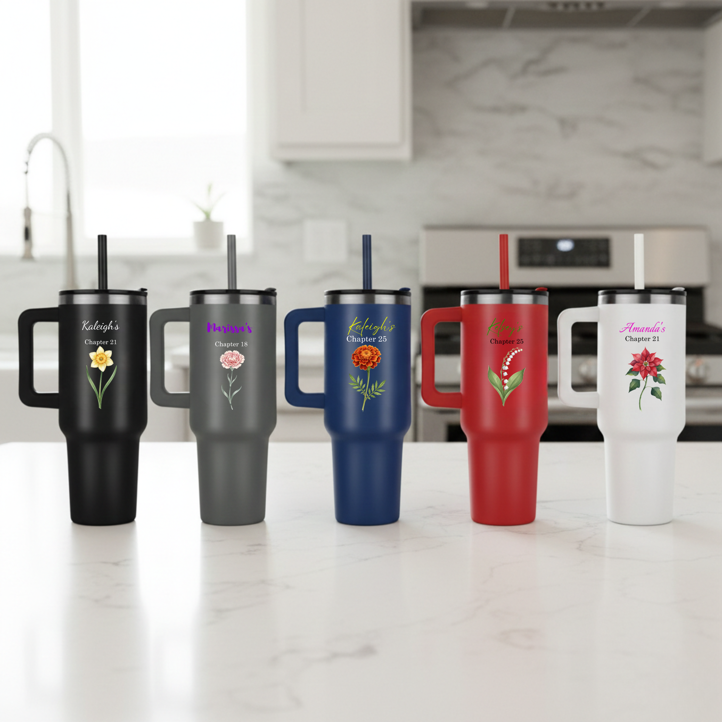 Celebrate the start of a brand-new milestone with the Life's Next Chapter Birthday Tumbler. Whether she’s turning 21, 50, or any year in between, this 40oz powerhouse is designed to keep her hydrated and stylish as she enters her best chapter yet. Featuring her name, her birth flower, and her new "Chapter" age, it’s the ultimate combination of sentiment and utility.
