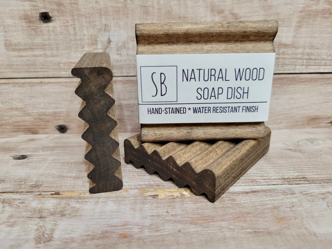 Natural Wood Soap Dish--poplar or beechwood washboard tray design to channel water off soap for easy drying. Hand-stained with water resistant poly finish 2.75"x3".
