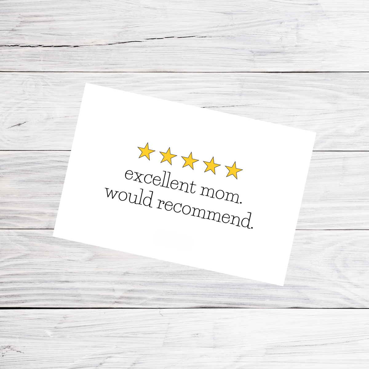 🌟 Five Stars: Add a touch of humor to your gift and make her laugh with this "5 star rating" card.