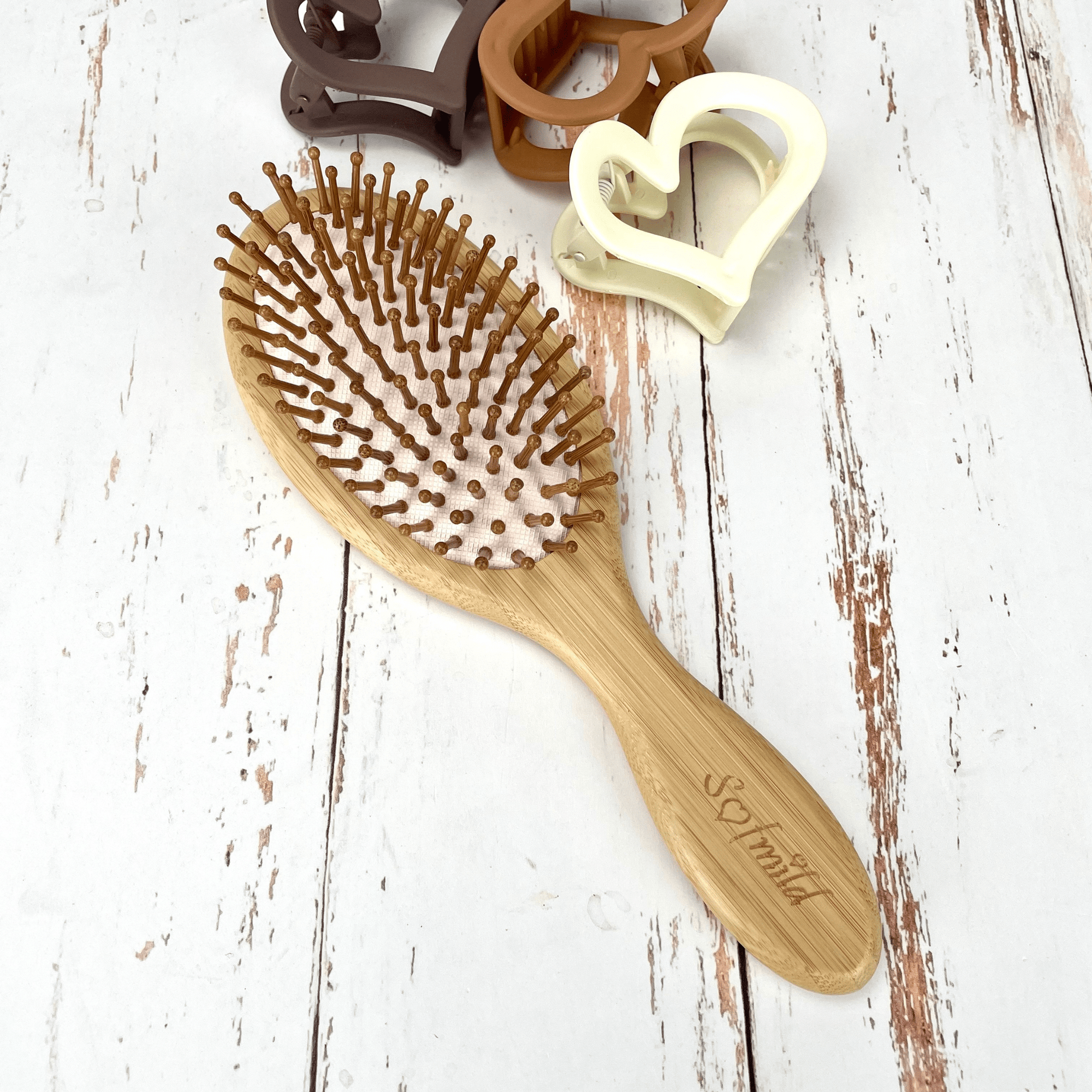 Surprise someone special on their birthday with this personalized hair accessory gift set. Custom-made for the occasion, this wooden brush can be personalized with their name on it. The Happy Birthday gift set is complete with stylish hair clips, personalized hair brush and a handy hair accessory jar, all nestled in a chic gift box.