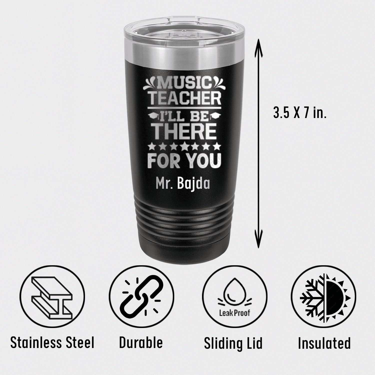 This stainless steel tumbler, laser-engraved with inspiration fit for any classroom hero, comes equipped with a secure lid and available in 17 vibrant color options. It's like having every crayon in the box to brighten up their day - ideal for keeping their beverages at the perfect temperature from first bell to last!