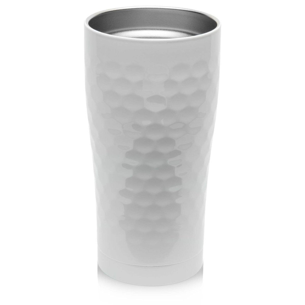 This golf ball dimpled tumbler is what every golfer needs with them on the course, at home, or in the office.  This unique tumbler will be the envy of everyone around you.  The triple vacuum insulation means this tumbler will keep your beers cold or your coffee hot!  The tough grade stainless steel makes this ready to roll with you anywhere you want!