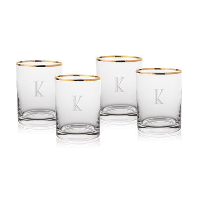 What better way to show off at a dinner party than to bring these beauties out. This gold-rimmed glass set is sure to have all your guests mesmerized with its luxurious style. This set is hand-blown clear glass with a frosted personalization on the front. The gold-rimming around the glass is what makes this personalized glass set stand out.