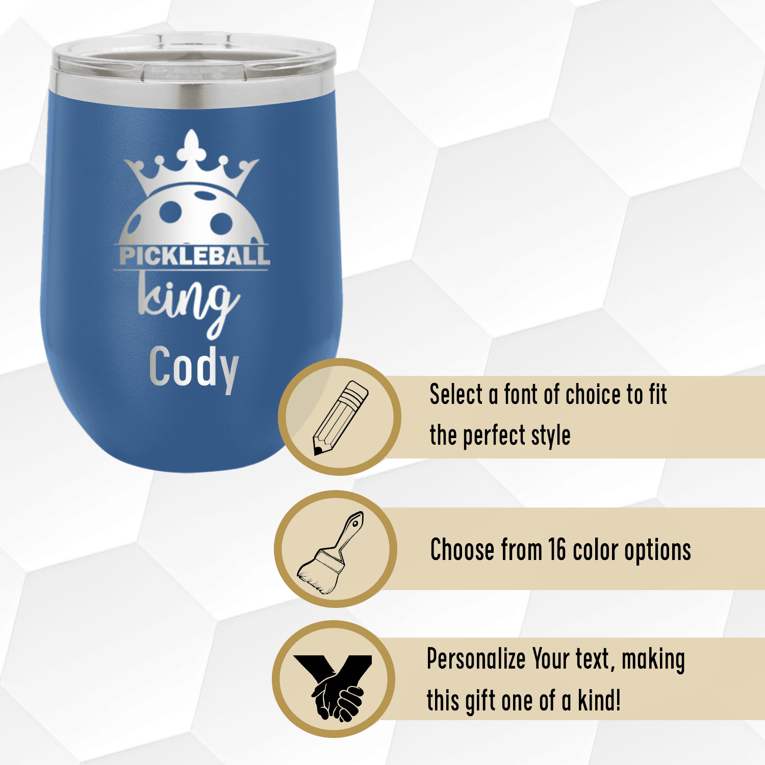 Looking for the perfect pickleball gift? Look no further! This laser engraved wine tumbler is a must-have for any pickleball enthusiast. Personalize it with your favorite saying or name, and enjoy sipping on your drink in style during those intense matches.