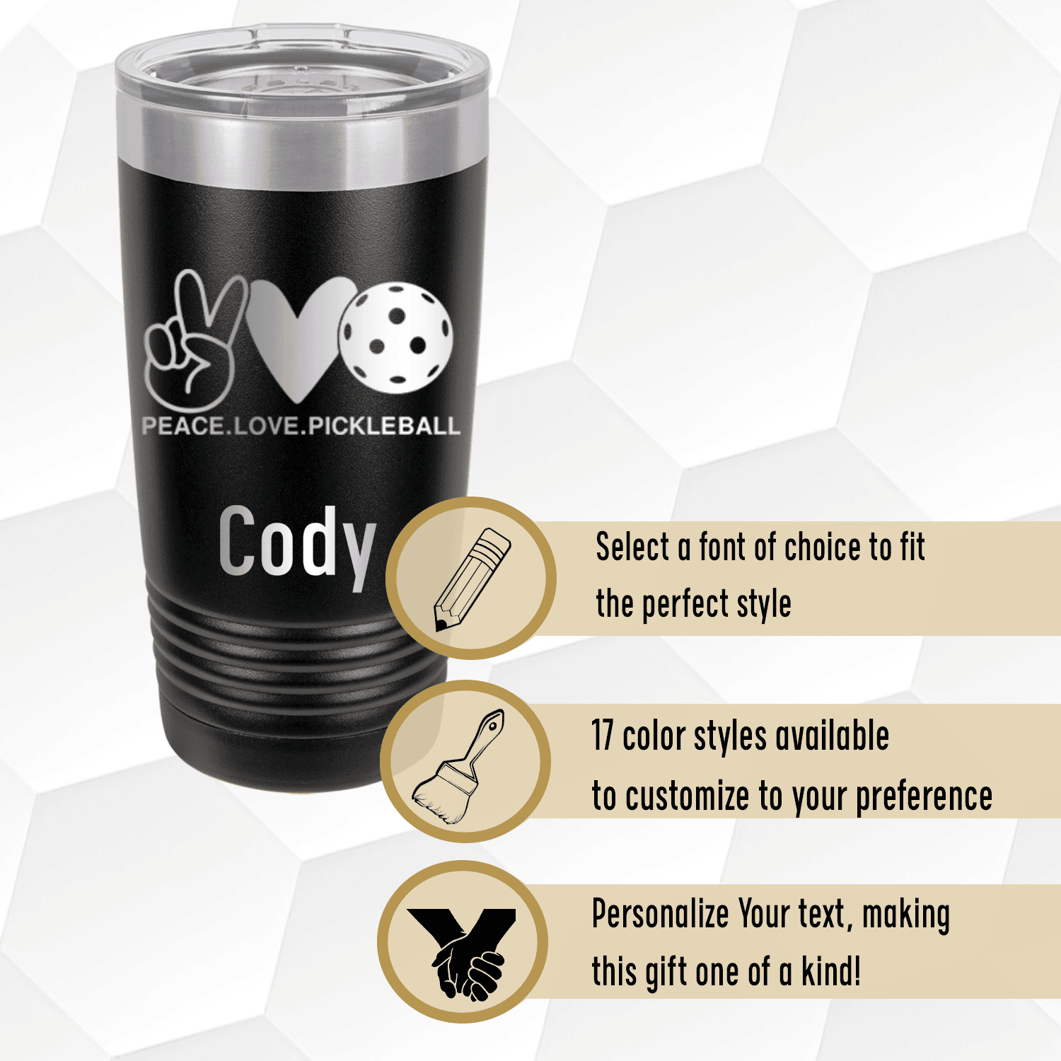 Looking for the perfect pickleball gift that will make a statement on and off the court? Look no further than this personalized laser-engraved stainless steel tumbler! Stay hydrated in style while showing off your love of the game with every sip.