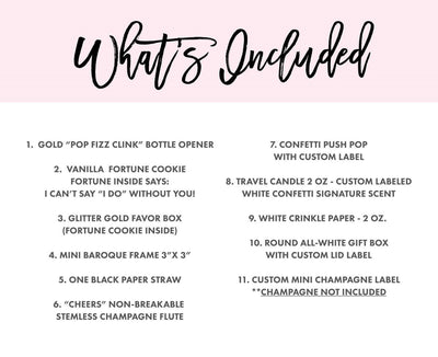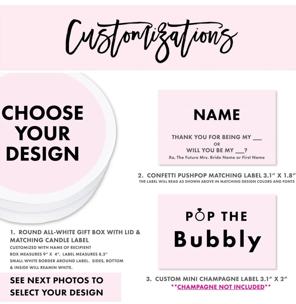 There’s nothing like the joy and excitement of seeing her face when you ask her to be by your side by sending a curated box of goodies. Our 'Pop & Fizz' gift box is a beautiful way to let them know " I can't say I do without you!"
