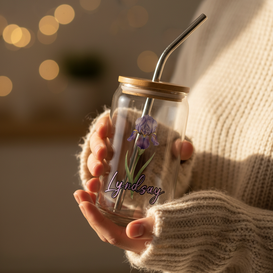Elevate your daily hydration with a touch of botanical elegance. The Signature Birth Flower Glass blends a trendy, soda-can-inspired silhouette with the timeless beauty of personalized glassware. Whether you are sipping an aesthetic iced coffee, a refreshing soda, or a custom cocktail, this 16 oz. glass makes every drink feel like a special occasion.