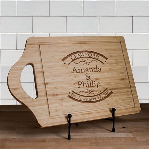 Cut and carve or prepare a well-lined up charcuterie with this engraved Bamboo cutting board. Crafted from sturdy and durable bamboo, this board has two size options: a Small and a large one. Both are hand washable and durable.