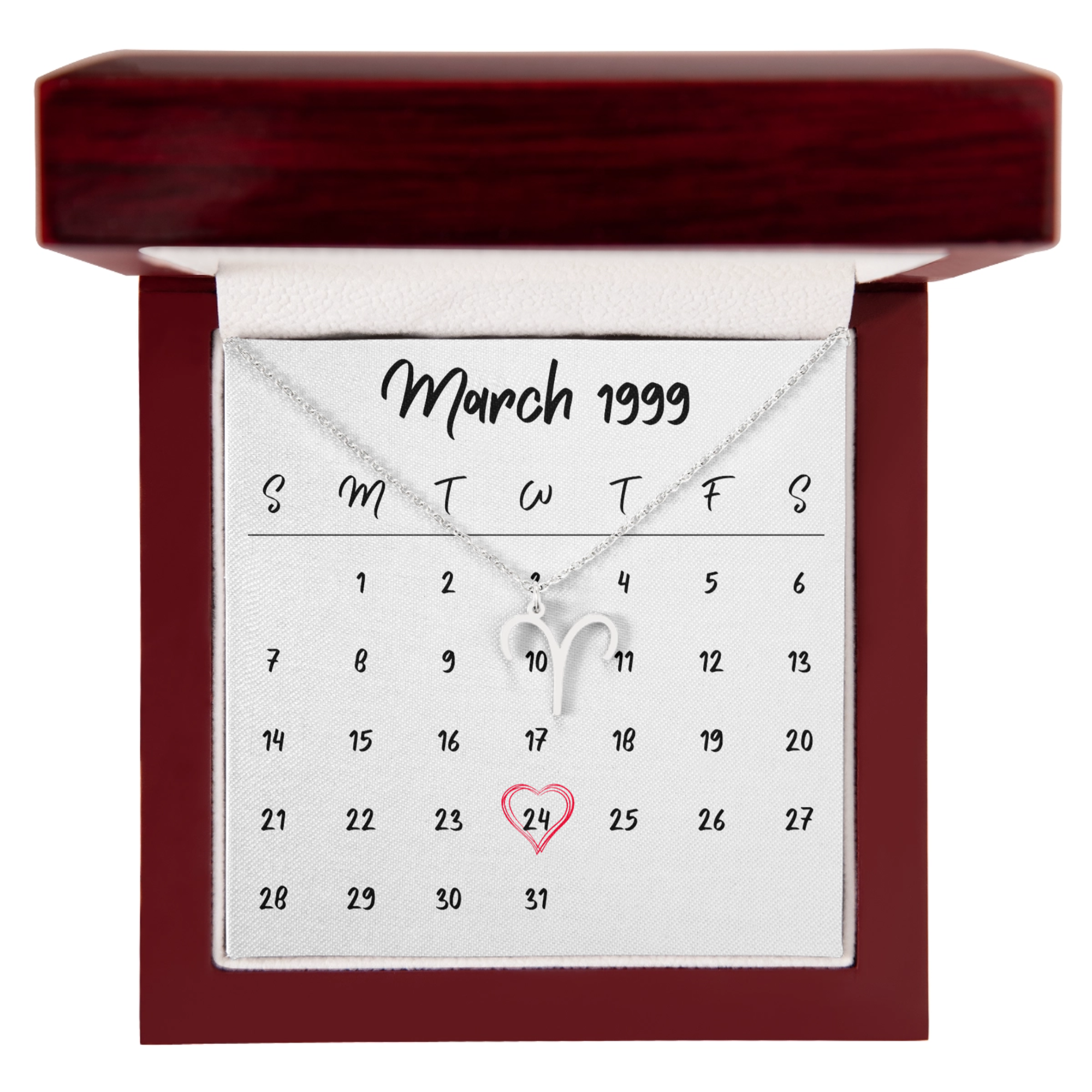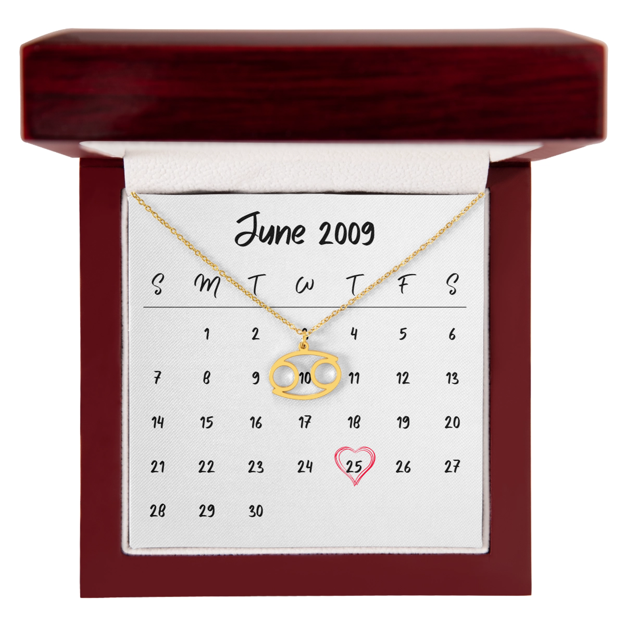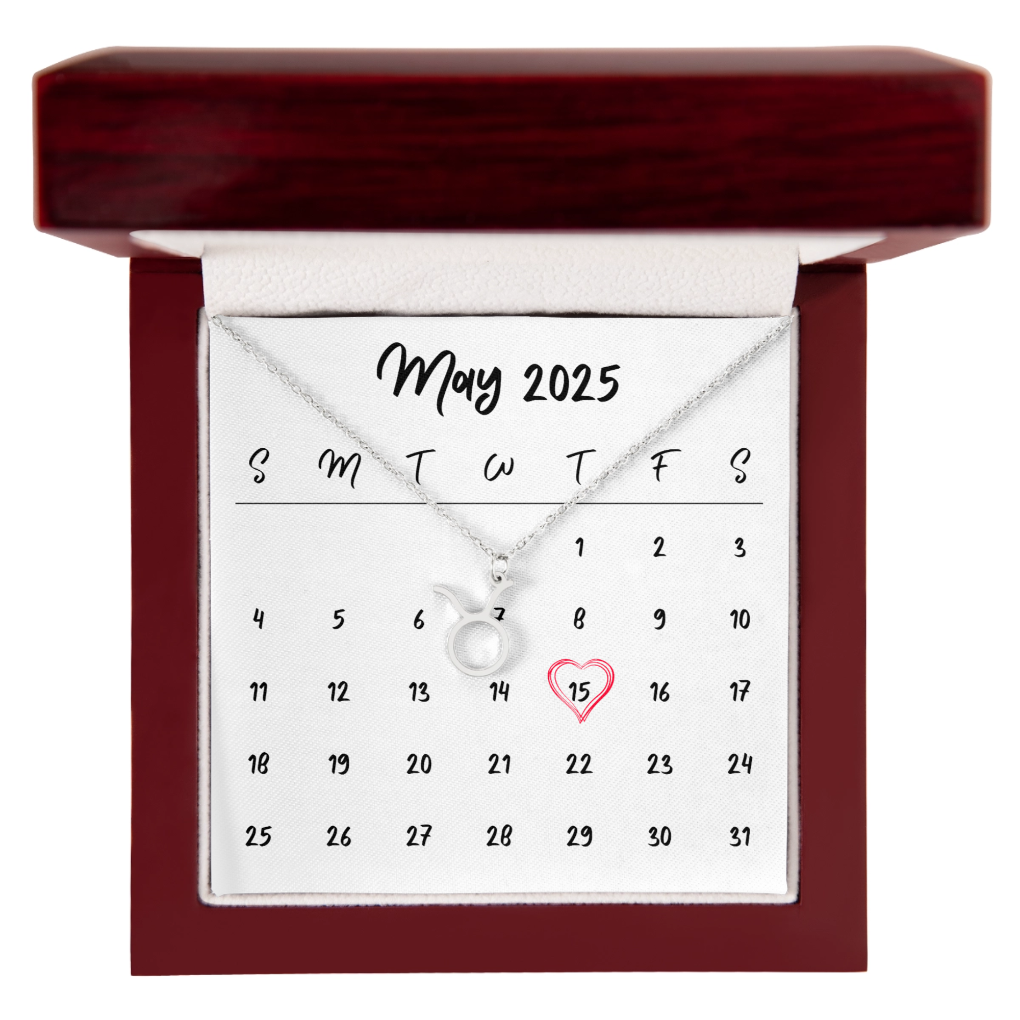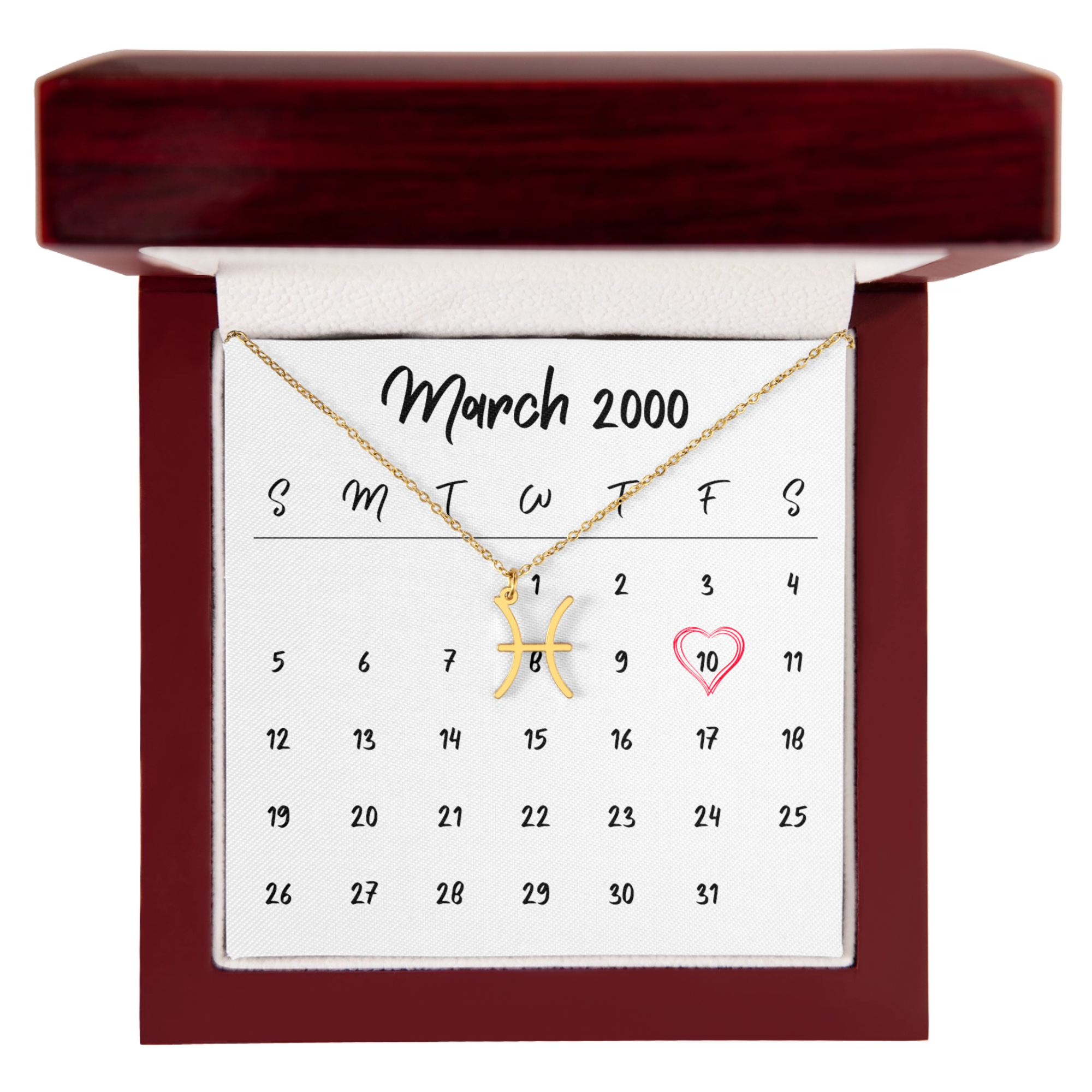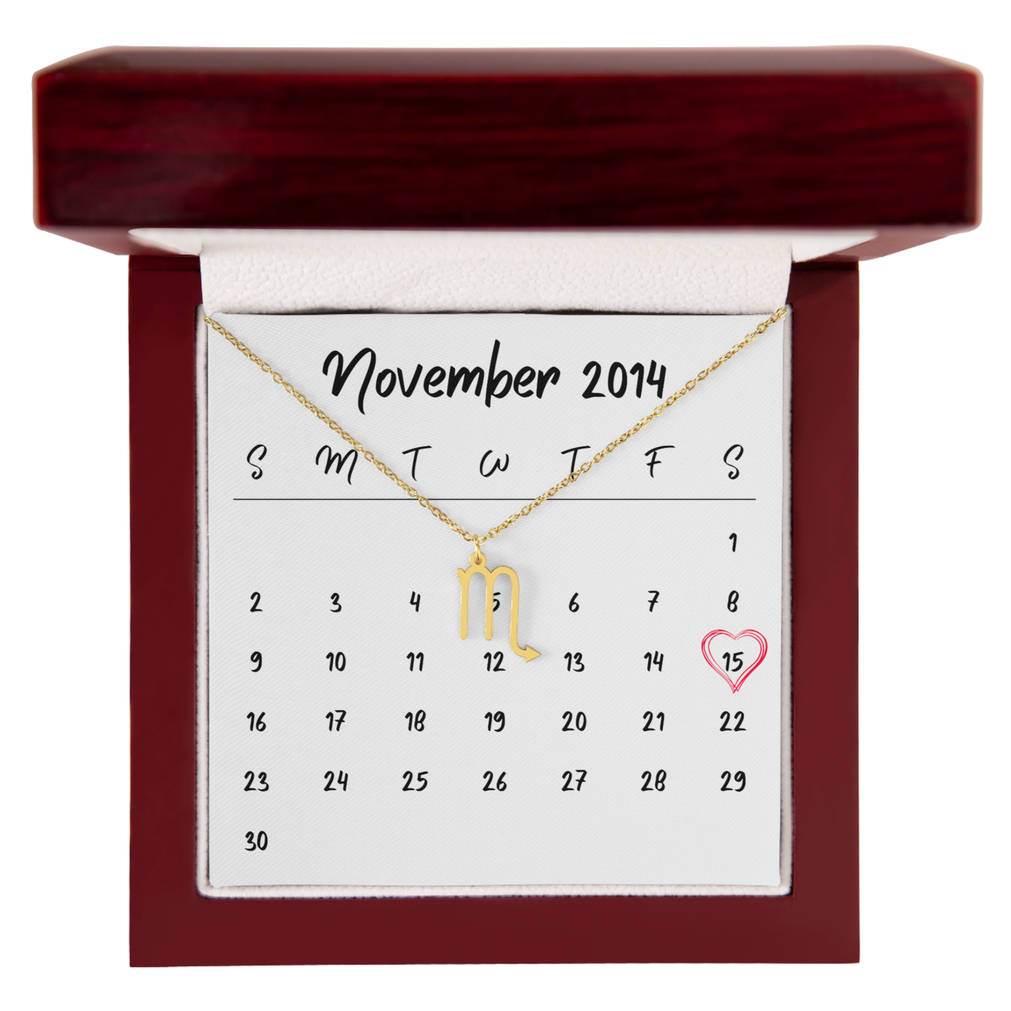 This meaningful gift combines two things that matter most: their birthday and their zodiac sign. Add their birth date, and we’ll create a custom calendar inside the gift box with a heart circling the special day. Paired with a zodiac pendant in your choice of polished stainless steel or 18K yellow gold finish, this necklace becomes a one-of-a-kind keepsake they’ll treasure forever.