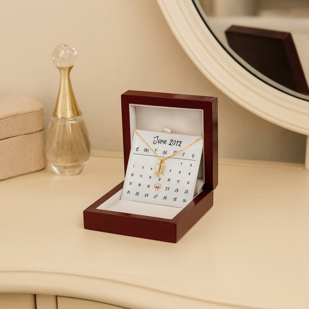To make the moment even more unforgettable, each necklace is presented in a mahogany-style luxury box featuring a brilliant LED spotlight. As soon as they open it, the light illuminates their zodiac pendant and personalized calendar insert, creating a breathtaking unboxing experience they’ll never forget.